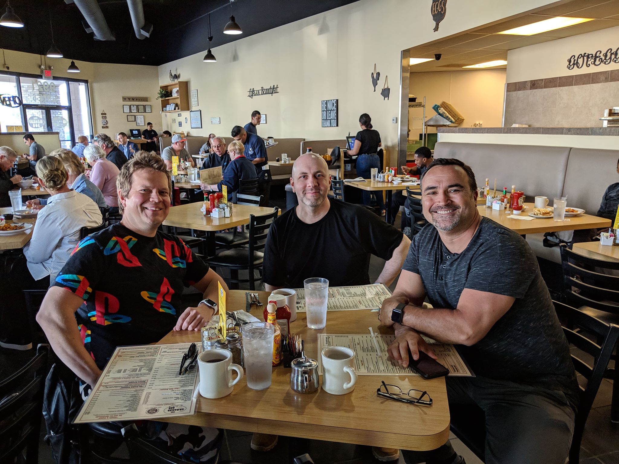 Utopos Games founders Jani Penttinen, John Comes and Elie Arabian in the final design meeting before opening the office on April 30, 2019.